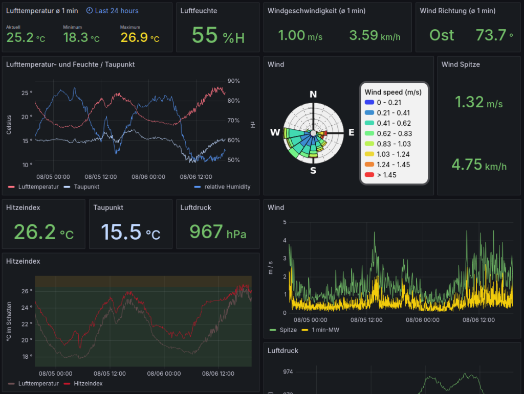 Zur Analyse werden auch noch weitere Werte geloggt, wie z.B. Windgeschwindigkeit, Beschleunigung und Rotation in allen 3 Achsen, sowie 3-achsiges Magnetfeld. Diese Werte können für die Diagnose des Testaufbaus verwendet werden.