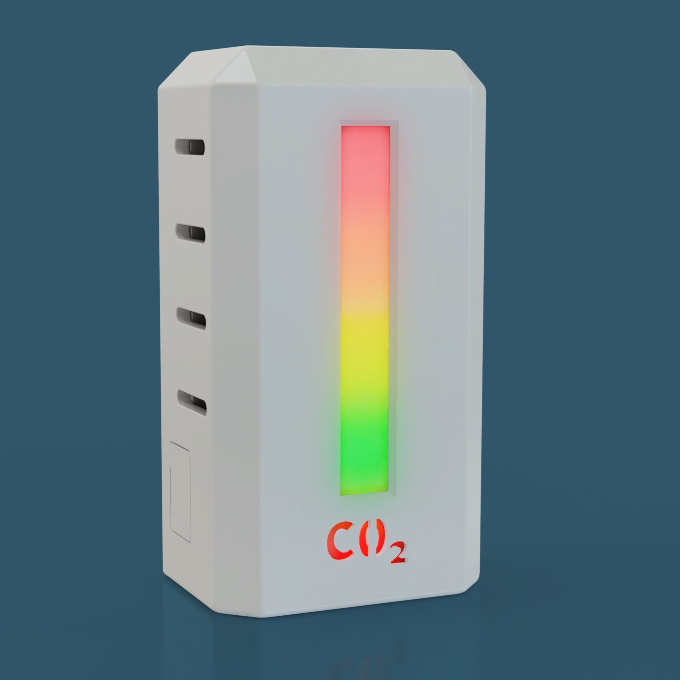 Unsere CO2-Ampeln zeigen den CO2-Gehalt in der Atemluft an. Auf Basis dessen kann angezeigt werden wann der Raum gelüftet werden soll.